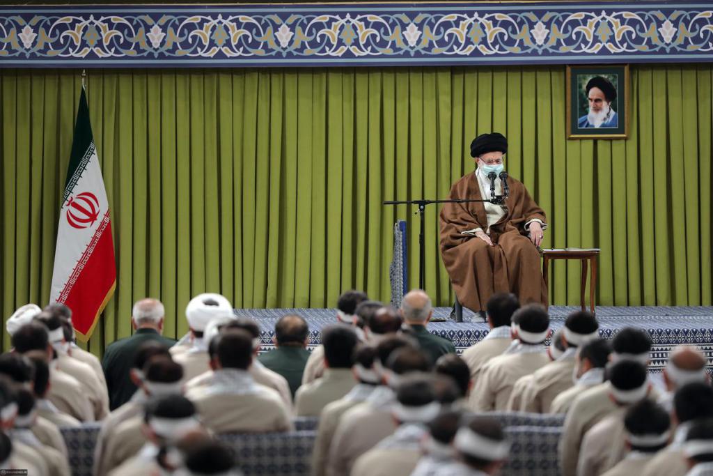 2022 年 11 月 26 日,伊朗最高领袖哈梅内伊在德黑兰会见伊朗巴斯基民兵代表。新华社发(哈梅内伊网站供图)