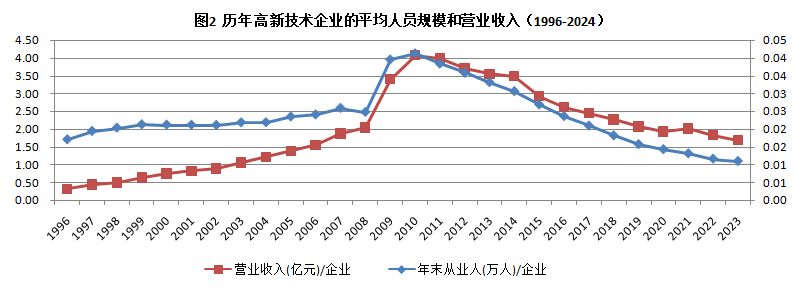 2024年,高新技术企业的46.3万家相较2023年仅增长1.9%,是近15年的最低增幅。
