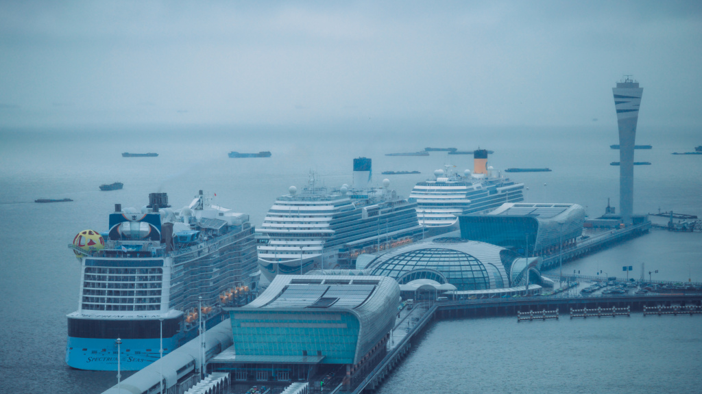 上海吴淞口邮轮港“三船同靠”,单日出入境超2.2万人次