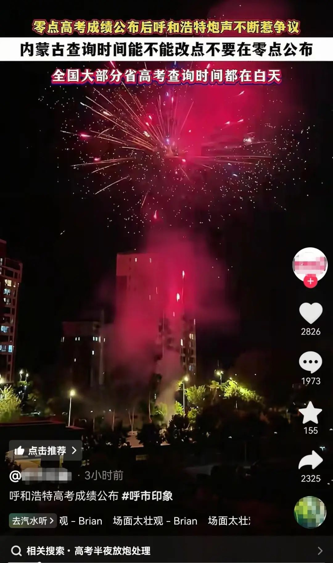 (原题为《高考放榜后,内蒙古多地凌晨放烟花庆祝,有居民吐槽扰民,官方回应》)