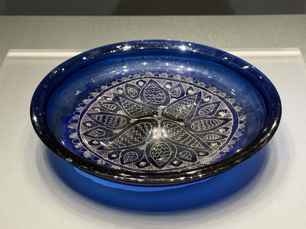 展览现场 八瓣团花纹蓝色琉璃盘 法门寺博物馆藏