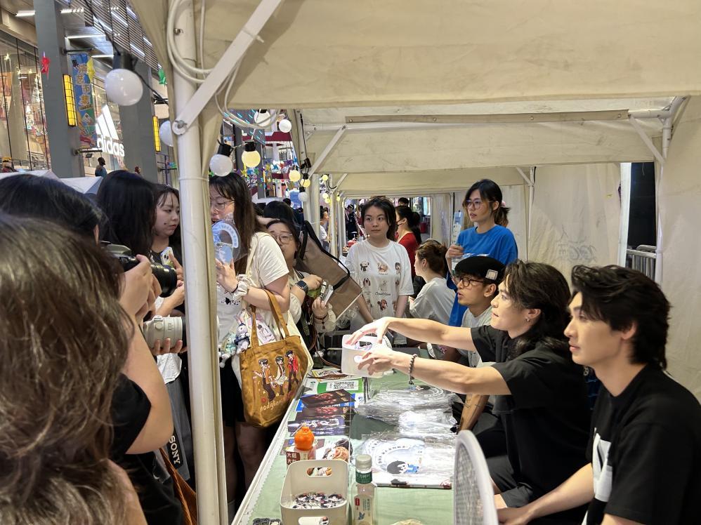 6月21日晚,音乐剧演员做一日摊主与观众互动,吸引了很多戏剧爱好者和粉丝。