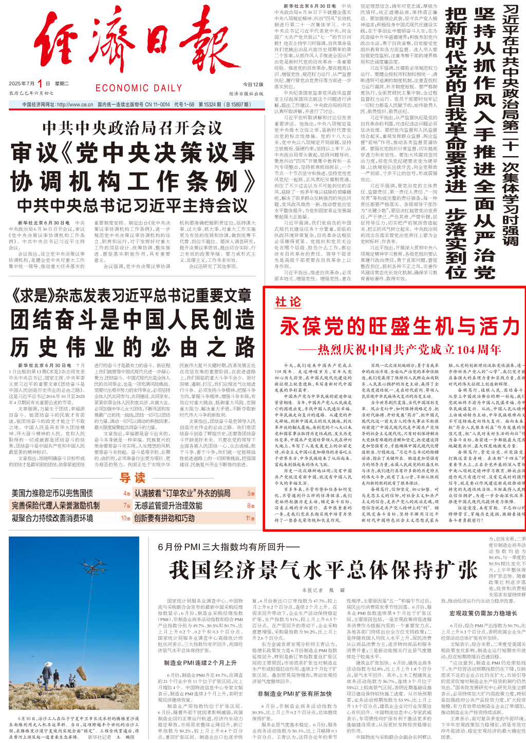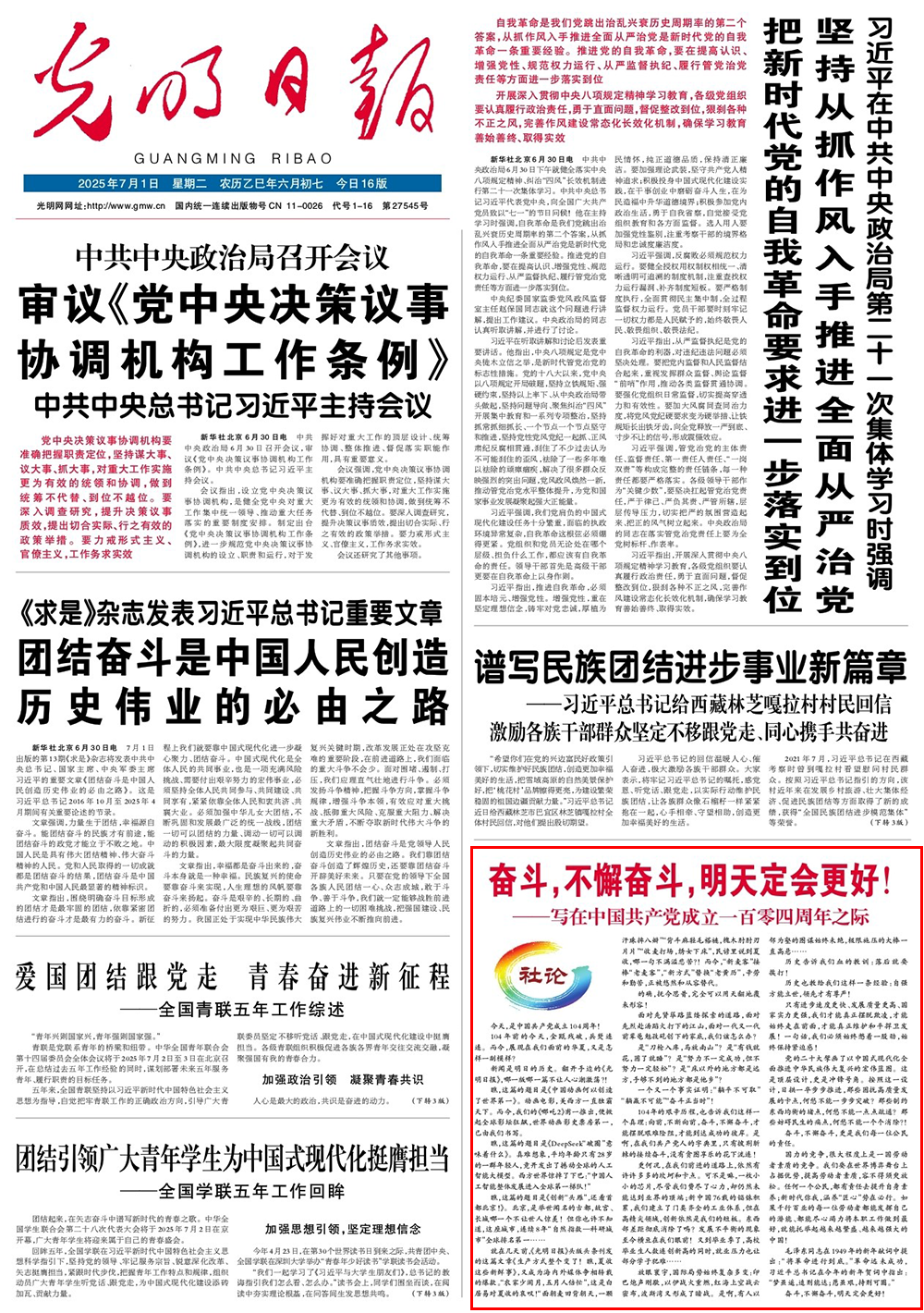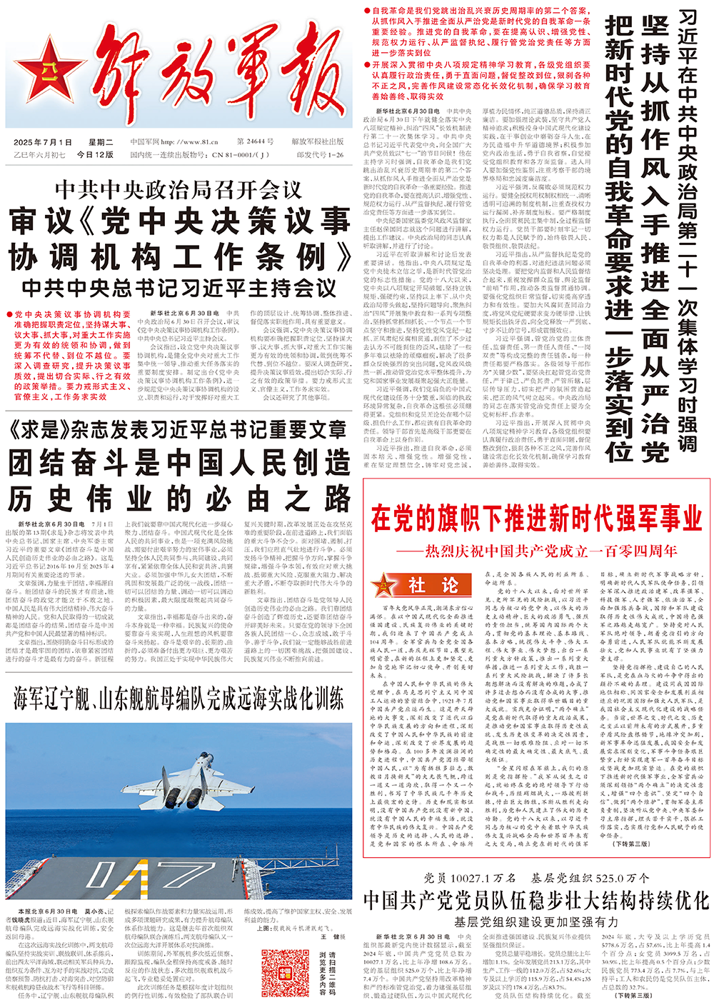 7月1日出版的《人民日报》《解放军报》《光明日报》《经济日报》等刊发社论,热烈庆祝中国共产党成立一百零四周年。