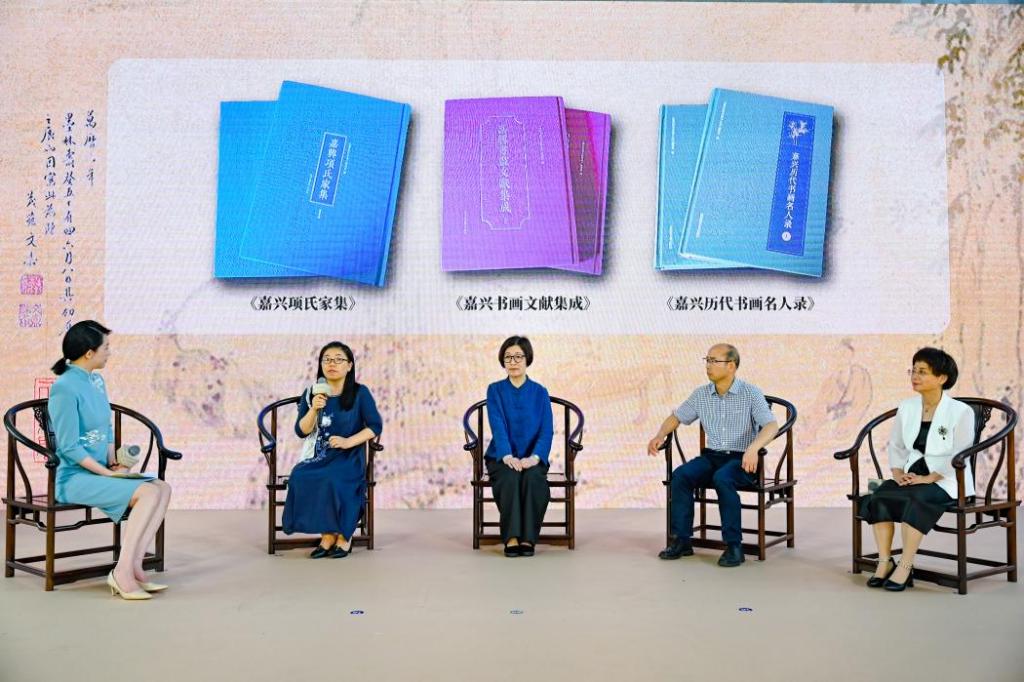 活动现场,嘉兴市社科院文化研究所所长富华、嘉兴市社科院文化研究所副所长杨自强、嘉兴市社科院文化研究所研究员沈红梅、国家图书馆出版社副总编辑张爱芳分享了《嘉有群贤-嘉兴名人录》《嘉兴书画文献集成》《嘉兴历代书画名人录》《嘉兴项氏家集》四项嘉兴名人文化研究成果。
