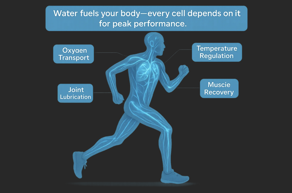 人体体重有三分之二是水分所构成,因此,从循环到呼吸与食物转换成能量的过程,几乎每个身体反应都需要水分。即使不做运动,身体每天还是需要约2000~3000毫升的水,大约有一半到三分之二是由饮品获得,其余则由食物提供。