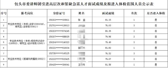 《关于包头市委讲师团面向社会公开引进紧缺急需专业人才面试成绩查询及进入下一环节人员名单公告》。
