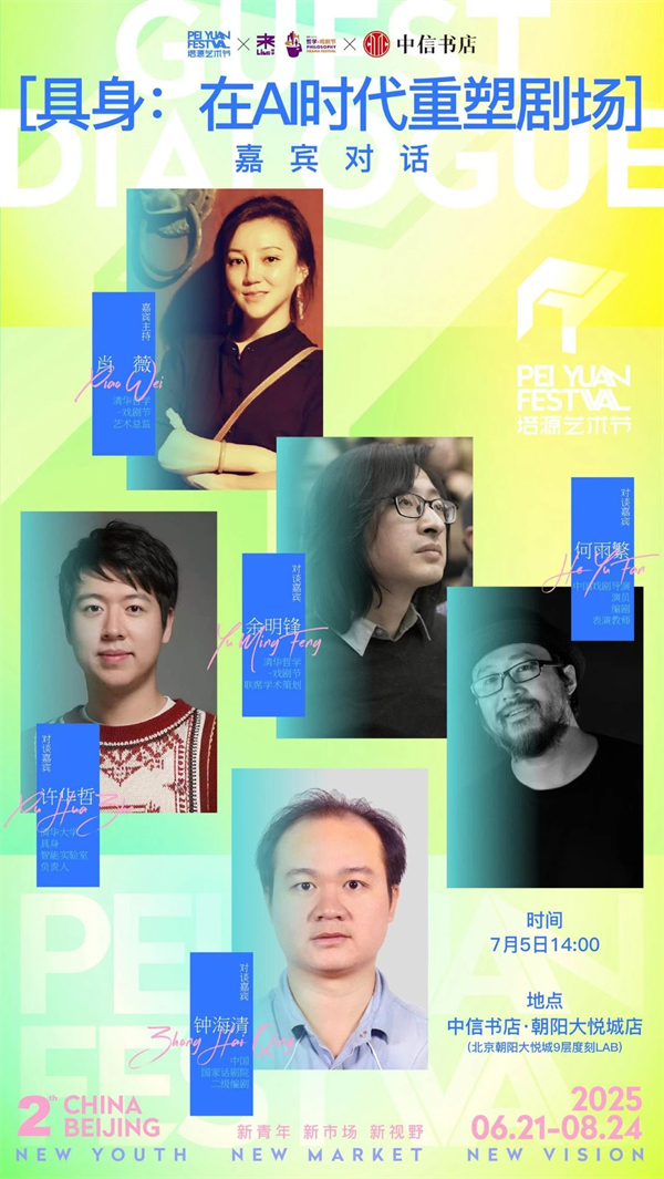 在AI快速生成文本、模仿人类情感、掌握感知与运动控制能力的今天,剧场——这一原本属于人类情感表达与集体想象的空间——是否依然属于“人”?当哲学思维深入技术伦理,剧作灵感源自算法模型,导演与演员开始与非人智能共舞,我们正置身一个前所未有的思想交汇点。本场活动由清华哲学-戏剧节艺术总监肖薇主持,邀请四位来自不同领域的思想与实践者:德国哲学与艺术哲学研究专家余明锋、具身人工智能研究者许华哲、实验戏剧导演何雨繁以及以AI主题剧作《硅心镇》广受关注的编剧钟海清,进行跨界对话。对谈将围绕“人类经验是否可以被编码”“AI能否成为戏剧共同创作者”“在哲学视角下我们如何重塑剧场美学”等议题展开。