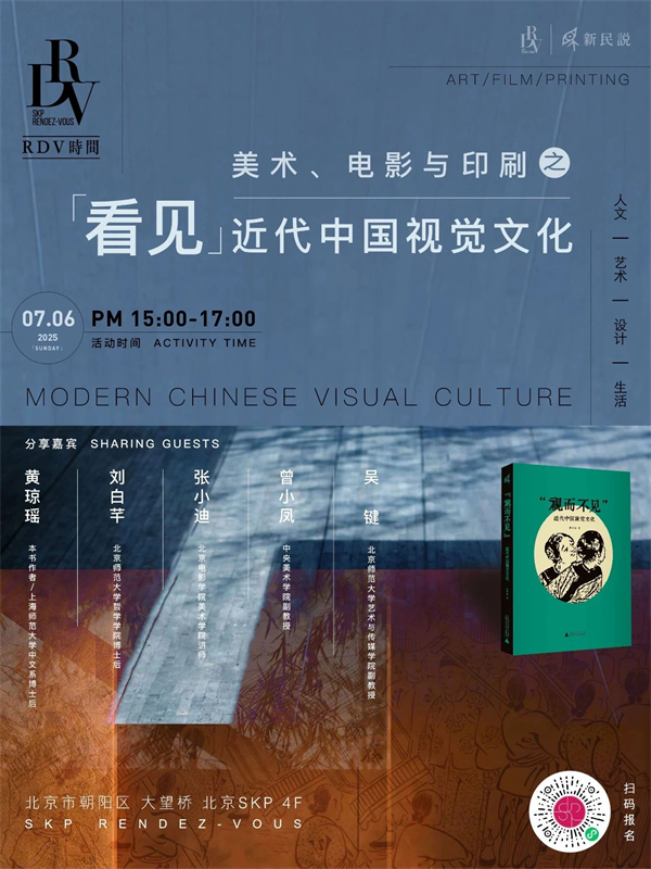 近现代中国的视觉世界异常丰富又急剧变化,传统视觉艺术发生着从传统到现代的深刻转型,新型的视觉技术也不断流入扩散,美术、电影、摄影、印刷等共同组成了一个巨型“镜城”。视觉文化研究本身的多学科取径,能帮助我们“看见”历史和文化中的“视而不见”,从而启发我们从视觉角度重新思考过去与当下。7月6日下午,我们特别邀请《“视而不见”:近代中国视觉文化》的作者黄琼瑶博士、北京师范大学艺术与传媒学院副教授吴键、中央美术学院副教授曾小凤、北京电影学院美术学讲师张小迪,以及学术主持、北京师范大学哲学学院博士后刘白芊,这些分别来自视觉文化研究所关涉的不同学科的新锐学者,共同做客SKP,在不同学科的交叉与对话之间,“看见”近代中国视觉文化。