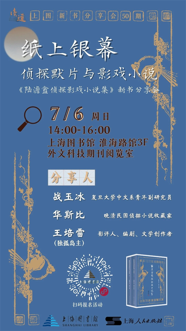 上海|纸上银幕:侦探默片与影戏小说——《陆澹盦侦探影戏小说集》新书分享会