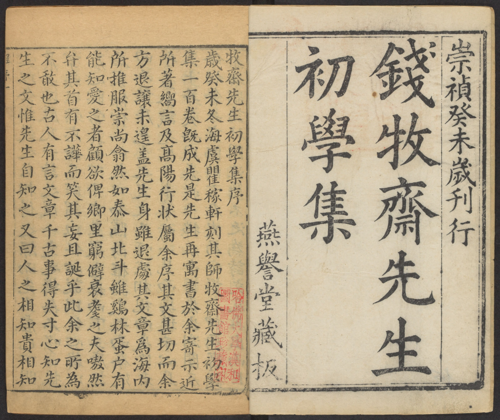 《牧斋初学集》,是钱谦益入清以前的诗文结集