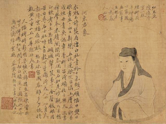 柳如是(1618-1664),本名杨爱,后改名柳隐,字如是,明末歌妓,钱谦益侧室。又称“河东君”、“蘼芜君”。图为清代钱杜《河东君象》。