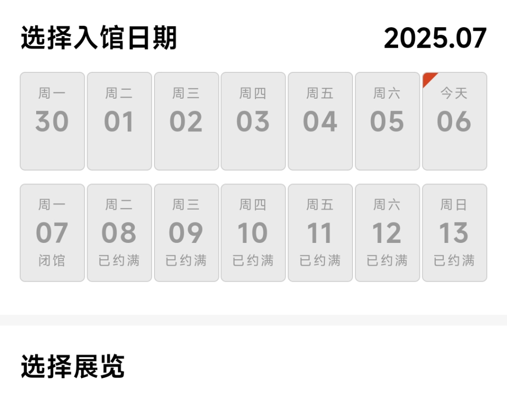 澎湃新闻记者点开国家博物馆小程序进入预约服务系统,果然,七天之内的门票均已约满。