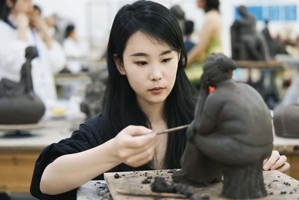 2024 年 4 月,第十七期陶瓷雕塑研修班,学员正在创作。景德镇陶瓷大学供图