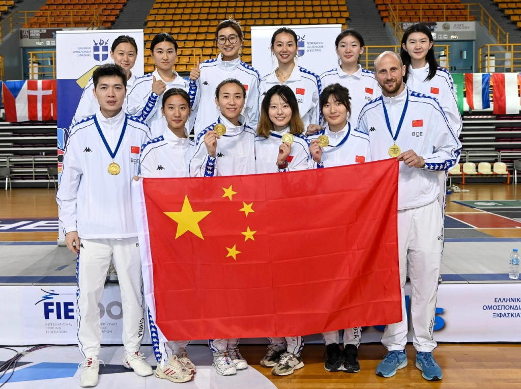 北京3月10日,2024-25赛季国际剑联女子佩剑世界杯希腊伊拉克利翁站比赛中,中国队击败劲旅法国队获得冠军,这是中国女佩自2011年伦敦站后,时隔14年再夺世界杯团体冠军。