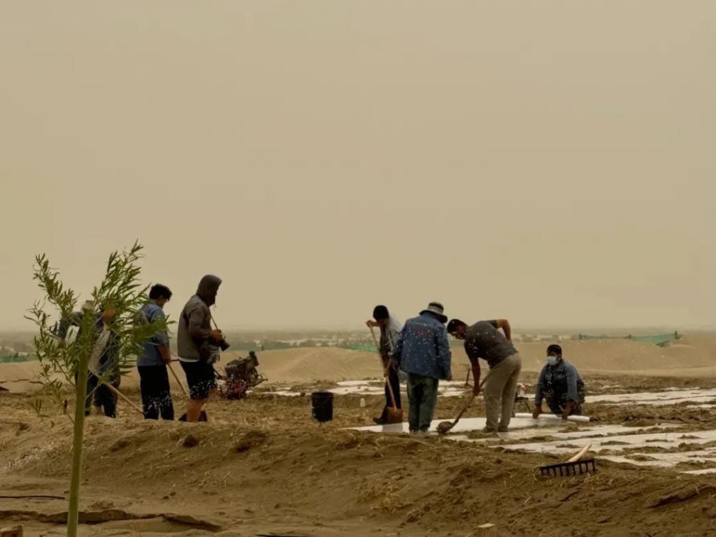 有时,刚种下去的种子或树苗,次日就被风沙掩埋。刚刚推平的沙丘,一阵风吹过,又重新堆积形成新的沙包。原本好好的根,瞬间 " 整个吹掉了 ",就连埋在地下的种子,也可能直接被掏空,只能反反复复补苗,有片沙枣林补了三次苗才活下来。