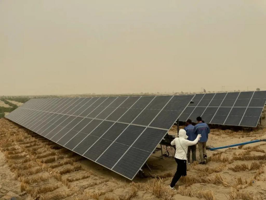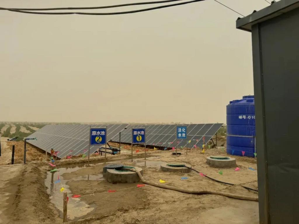 近年来,沙雅县通过光伏项目保障治沙造林 6.3 万亩,梭梭、红柳的成活率超过 80%。当地还与浙江大学团队合作,在 50 亩试验田里搞起了苦咸水淡化。处理后的水,不仅能浇树,还能灌溉农作物。