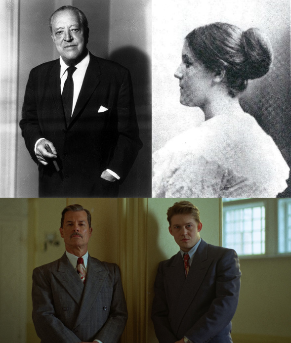 上图:建筑师密斯·范德罗与妻子阿达·布伦;下图:《粗野派》中的资本家哈里森·李·范布伦父子