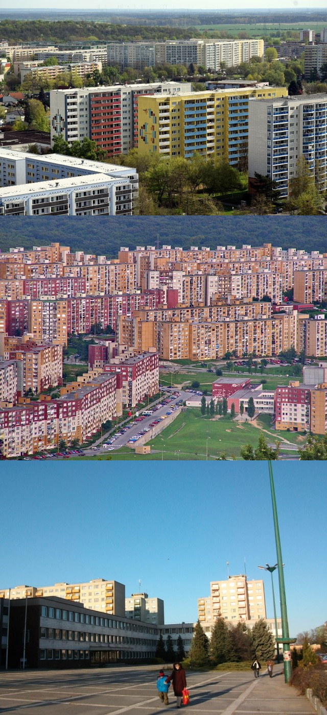 上:柏林马尔灿区的民主德国时期粗野派建筑;中:斯洛伐克的阿哈诺夫斯基社区;下:匈牙利多瑙新城板楼