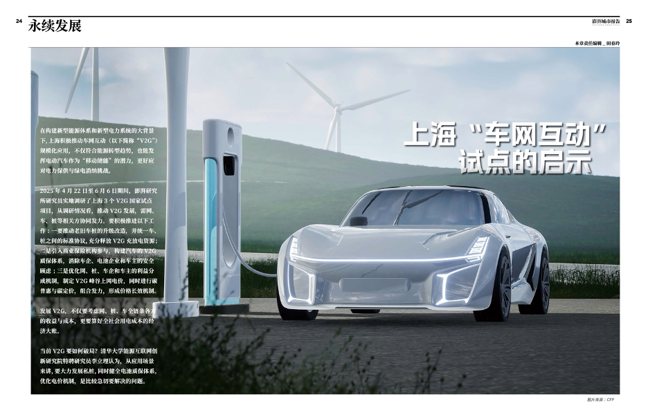 在构建新型能源体系和新型电力系统的大背景下,上海积极推动车网互动(以下简称“V2G”)规模化应用,不仅符合能源转型趋势,也能发挥电动汽车作为“移动储能”的潜力,更好应对电力保供与绿电消纳挑战。2025年4月22日至6月6日期间,澎湃研究所研究员实地调研了上海3个V2G国家试点项目,从调研情况看,发展V2G,不仅要考虑网、桩、车全链条各方的收益与成本,更要算好全社会用电成本的经济大账。