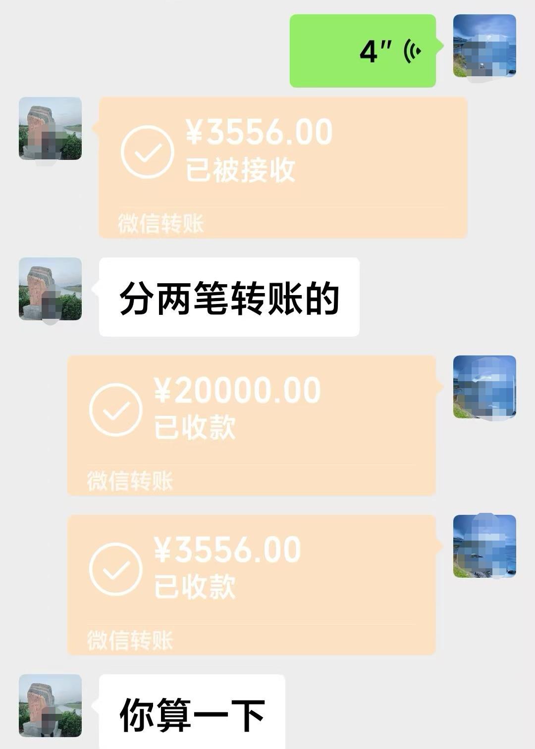 签字人分多次转账结清了餐费(图片来源:受访者供图)