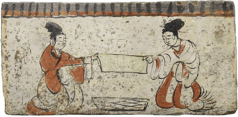 彩绘采帛木几图壁画砖,魏晋,高台县博物馆藏