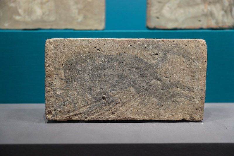 展览现场,中矢牛图画像砖,魏晋,酒泉市博物馆藏