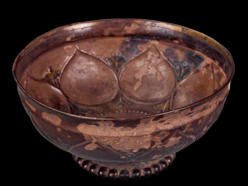 镀金口三鱼莲瓣纹银碗,唐,武威市博物馆藏