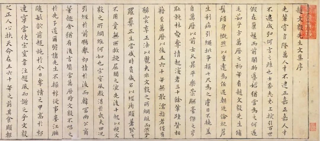 黄道周楷书《赵文毅公文集序》卷 (局部) 明 常熟博物馆藏