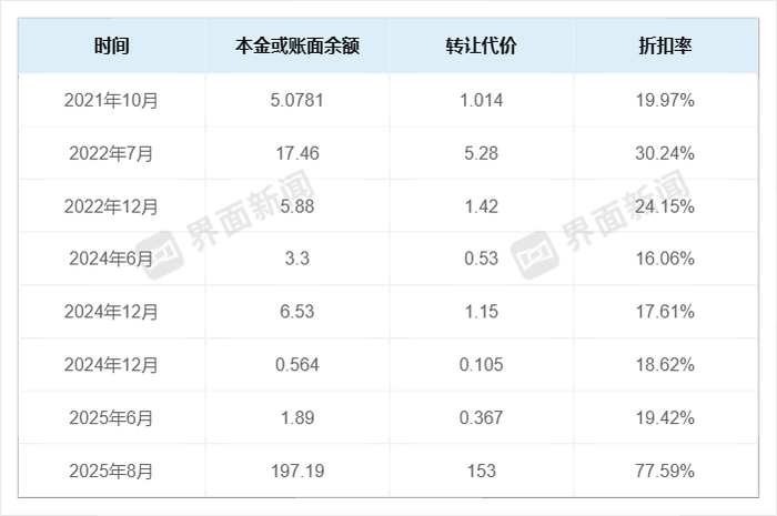 公告称,截至交易基准日,所出售资产的本金及利息账面余额约为197.19亿元。在扣除该行已为所出售资产计提的约47.97亿元的减值准备后,所出售资产的账面净值约为149.22亿元。