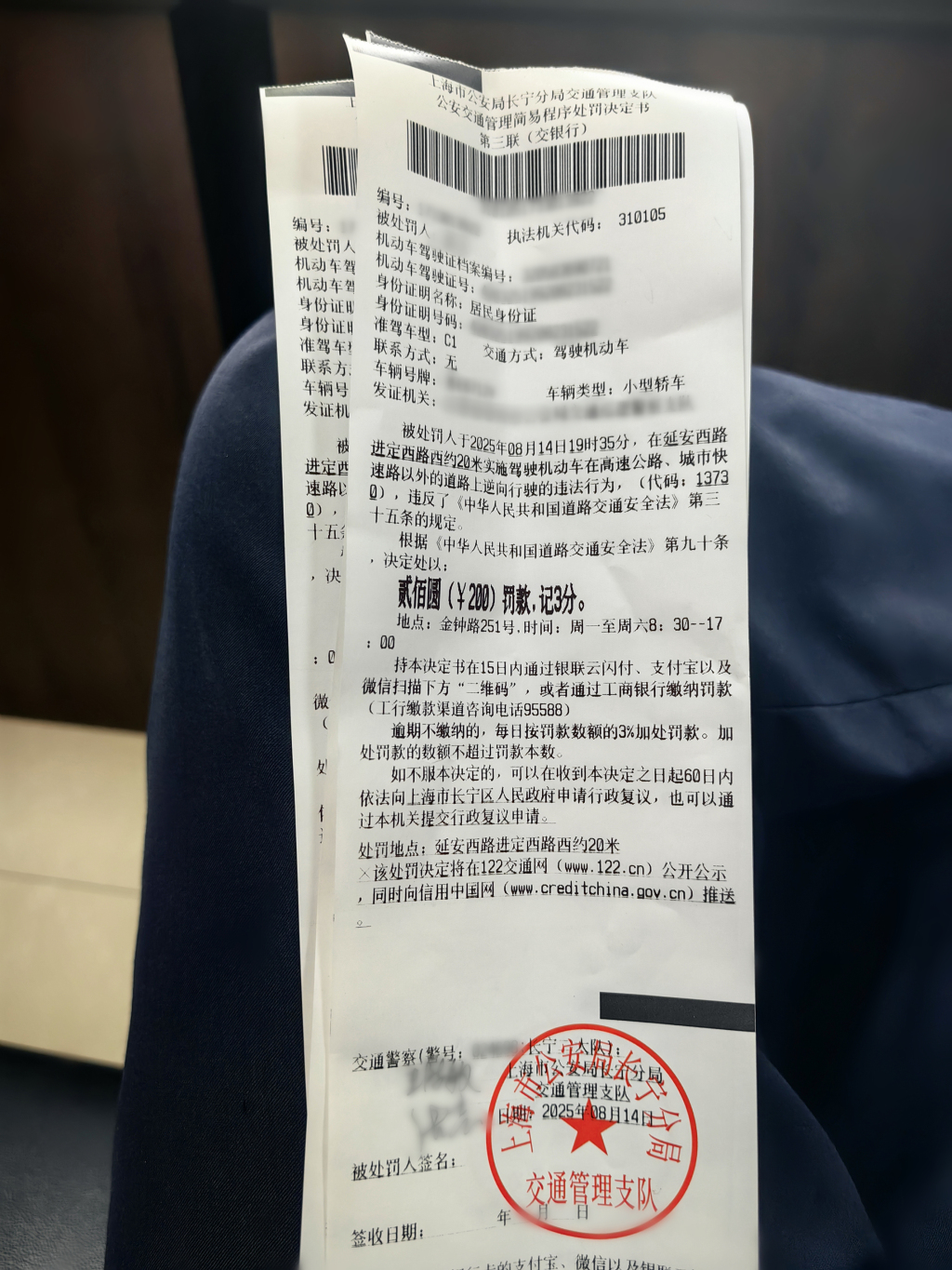 涉事驾驶员被处罚 上海市交管总队供图