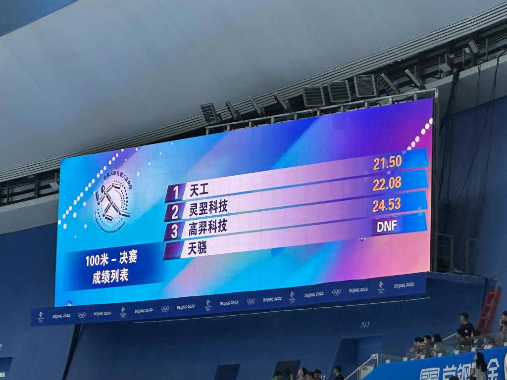 在刚刚结束的百米 " 飞人大战 " 决赛中,北京天工队的 " 具身天工 Ultra" 机器人以 21.50 秒的成绩夺得全球首个人形机器人运动会 100 米短跑项目的冠军。
