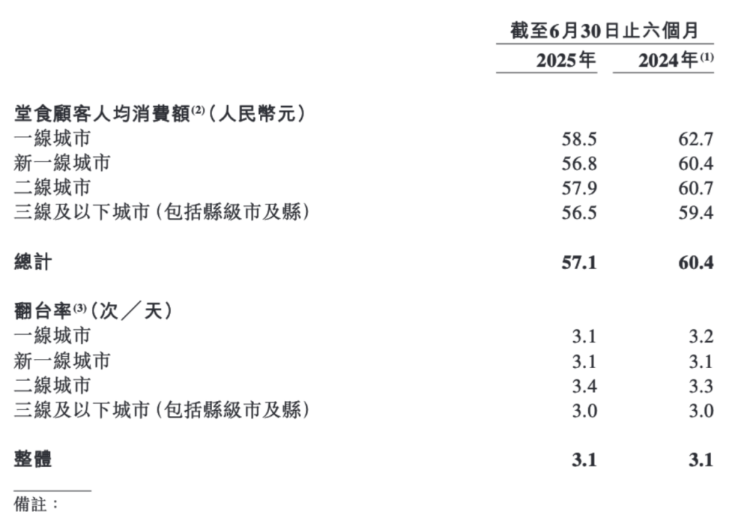 具体业务指标方面,上半年小菜园堂食顾客人均消费额从去年上半年的60.4元降至今年上半年的57.1元。公司的整体翻台率为3.1次/天,与去年同期持平。二线城市的翻台率同比略有提升,主要由于门店店型的优化带来的门店坪效的提高。