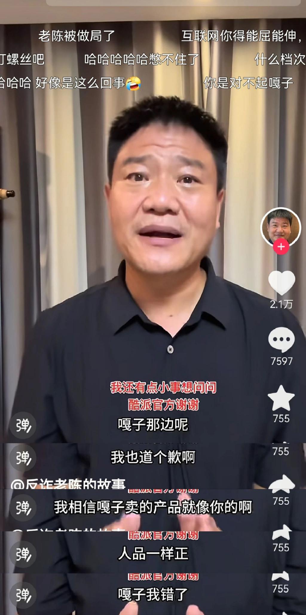 百万网红反诈老陈打假嘎子哥翻车,直播间被抖音封禁,鞠躬道歉求放过
