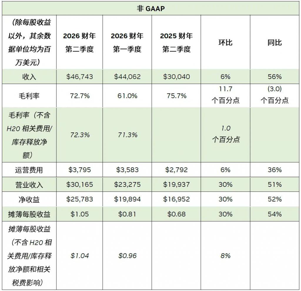 用任何客观标准来衡量,英伟达的这份财报都堪称亮眼。季度营收达 467.43 亿美元,同比增长 56%,略高于市场预期的 462.3 亿美元;核心引擎数据中心业务收入再创新高,达 411 亿美元,同比增长 56%;调整后每股收益为 1.05 美元,同比增长 54%,同样高于预期。