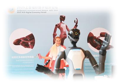 7 月 11 日,嘉宾在 2025 上合组织数字经济论坛上体验操控人形机器人。