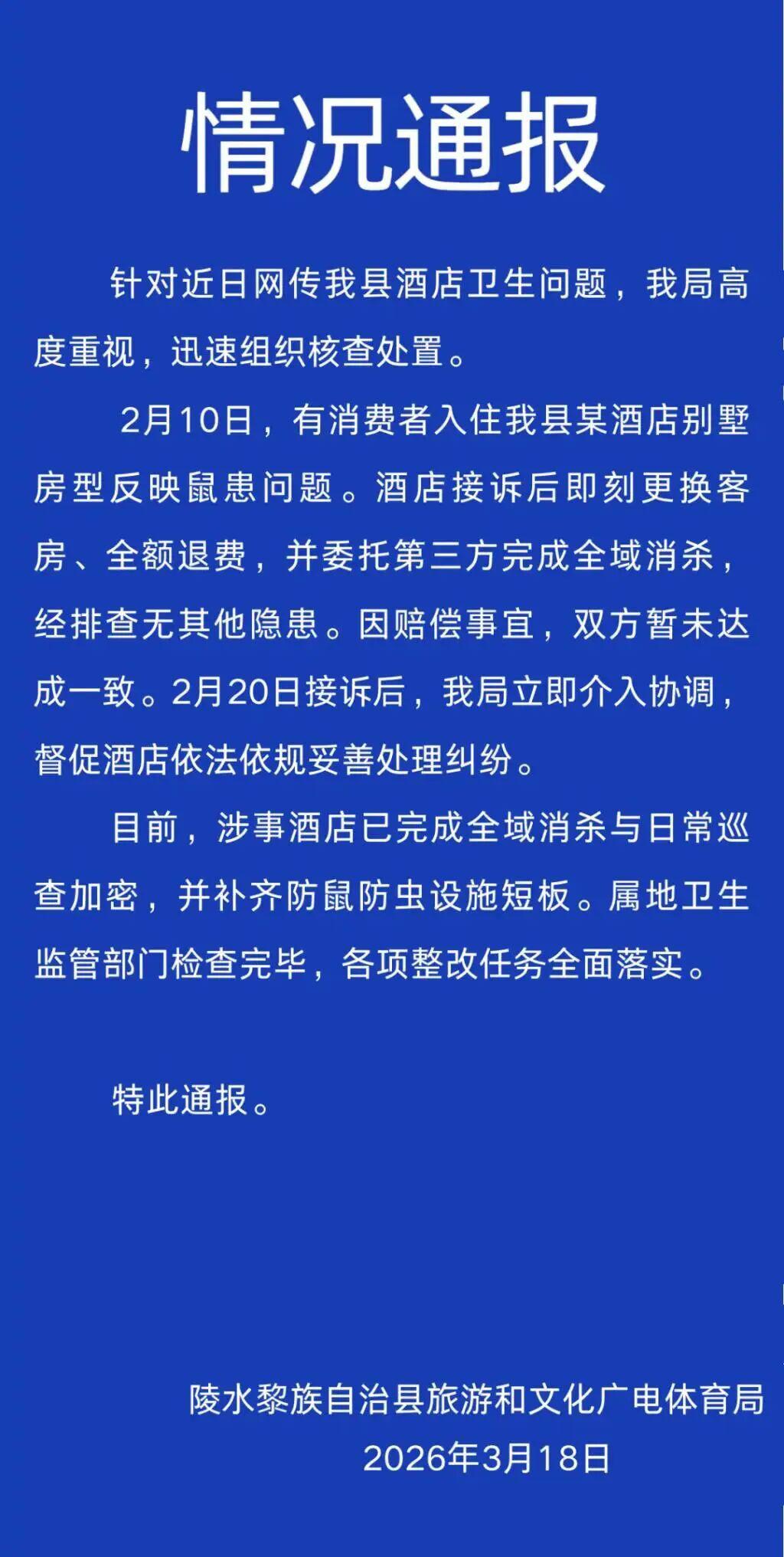 3月18日,海南陵水黎族自治县旅游和文化广电体育局发布情况通报:据媒体此前报道,3月18日,网友戚先...