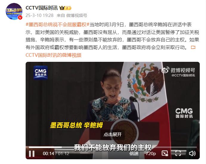 当地时间3月9日,墨西哥总统辛鲍姆在讲话中表示,面对美国的关税威胁,墨西哥没有屈从,而是通过对话让美...