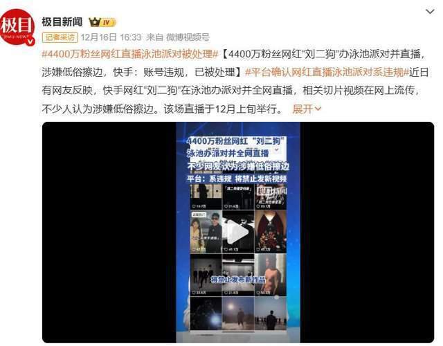 • 4400万粉丝网红直播泳池派对,涉嫌低俗擦边被平台处理