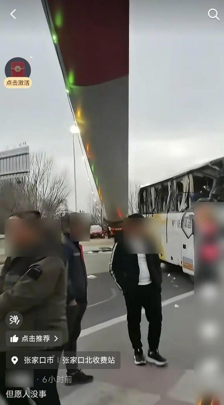 河北张家口一风电叶片运输途中与客运大巴碰擦,车头变形,当地回应综合