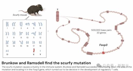 Mary Brunkow和Fred Ramsdell在2001年做出了另一项关键发现,解释了为什么某一小鼠品系对自身免疫性疾病特别易感。他们发现这些小鼠在一个基因上有突变,这个基因被他们命名为Foxp3。