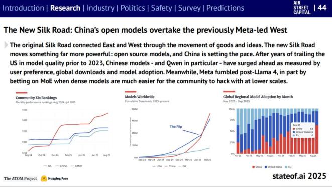 Benaich 总结道:“AI的叙事不再是技术进步,而是文明的竞速。”