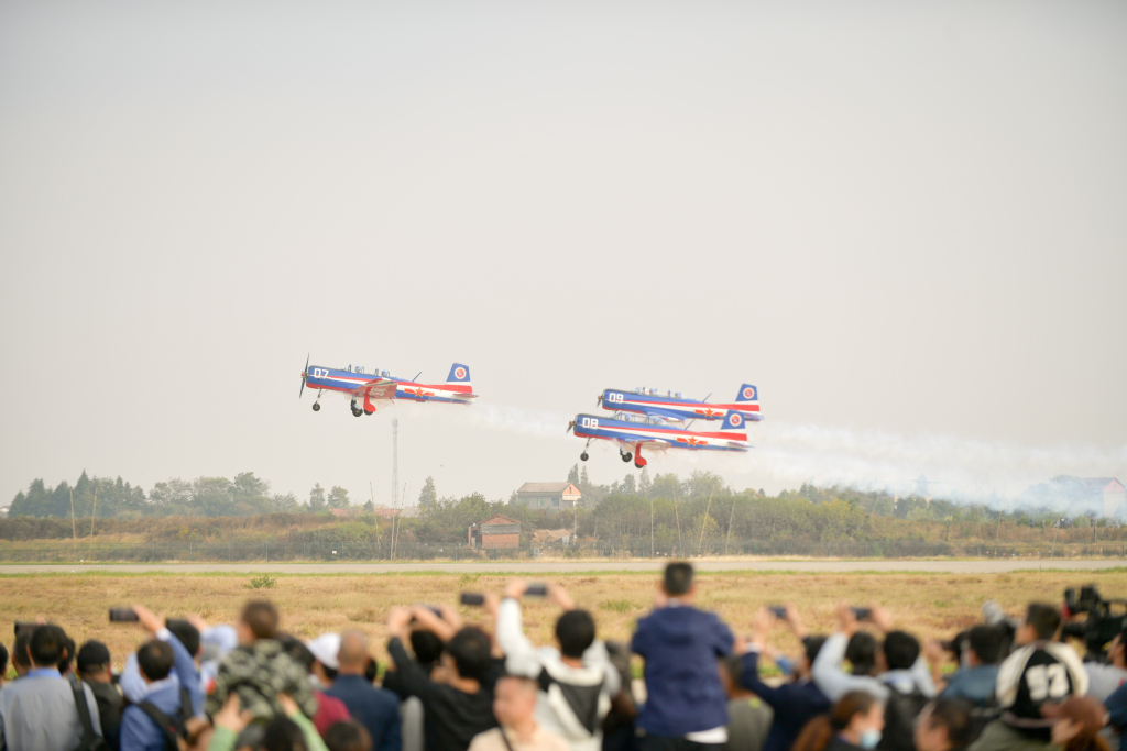 “七机开花”“四机如影随形”“落叶飘”……一连串惊险而惊艳的飞行动作引来现场观众阵阵惊呼。