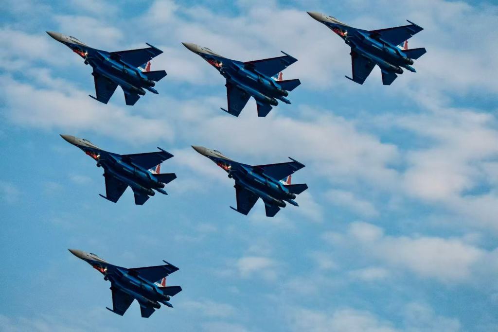 “勇士”飞行表演队是目前世界上唯一使用双发重型战机的空军飞行表演队。从1998年开始,“勇士”飞行表演队曾多次来华参加航展,此次赴昌参展填补了其在我国中部城市飞行表演的空白。此次南昌飞行大会,“勇士”飞行表演队携6架苏-35S、1架苏-30SM亮相。在下午的飞行表演中,“勇士”飞行表演队表演了6机编队“加力盘旋”、4机“菱形”密集编队、双机“对头”交错等一系列惊险刺激的特技飞行动作。