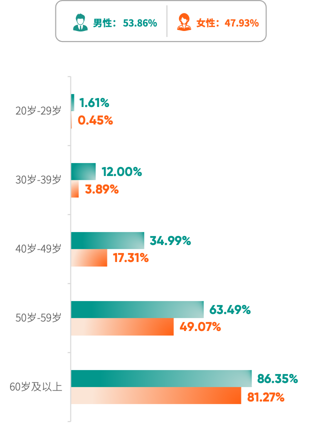 统计维度包括心血管类、代谢和内分泌类、消化系统类和性别相关等20项体检异常结果。体检异常结果的判定标准和全国流行病学数据均参考国家行业标准、国家权威报告和医学指南等。爱康集团的体检数据采用私有化部署的医疗云存储,已通过国家公安部信息系统安全等级保护备案(三级),以保障体检人群数据的安全。
