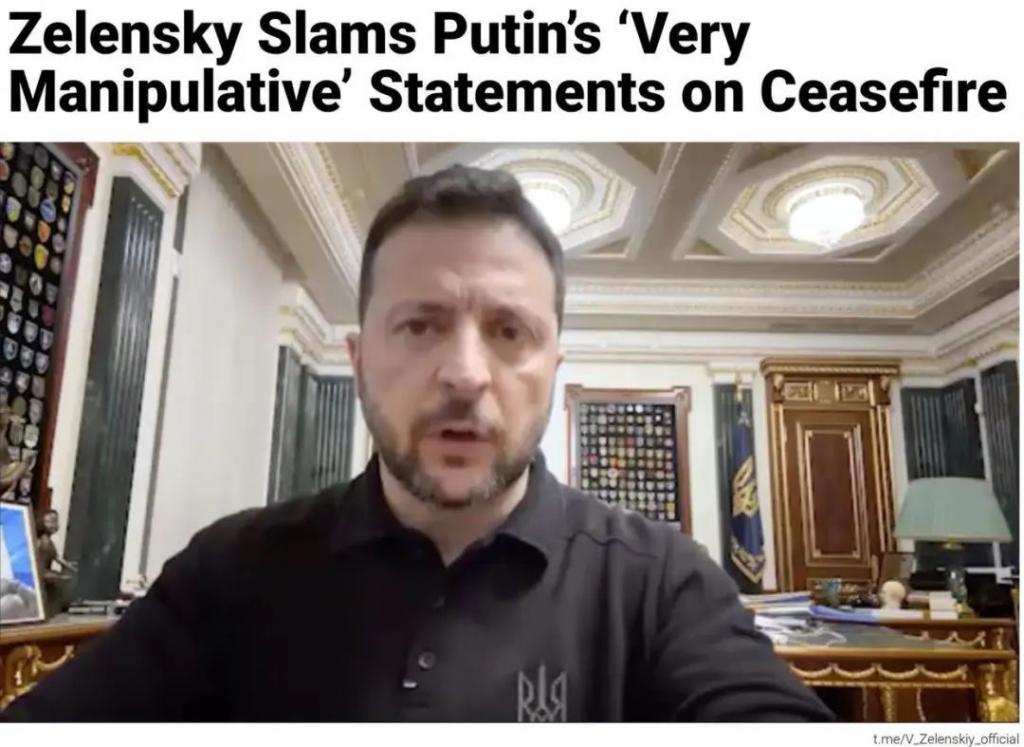 ▲当地时间 13 日晚间,乌克兰总统泽连斯基在视频讲话中表示,从普京的表态可以看出,俄方为停火提议设置了多个先决条件,乌方认为这是俄方的操纵手段。(图片来源:莫斯科时报)