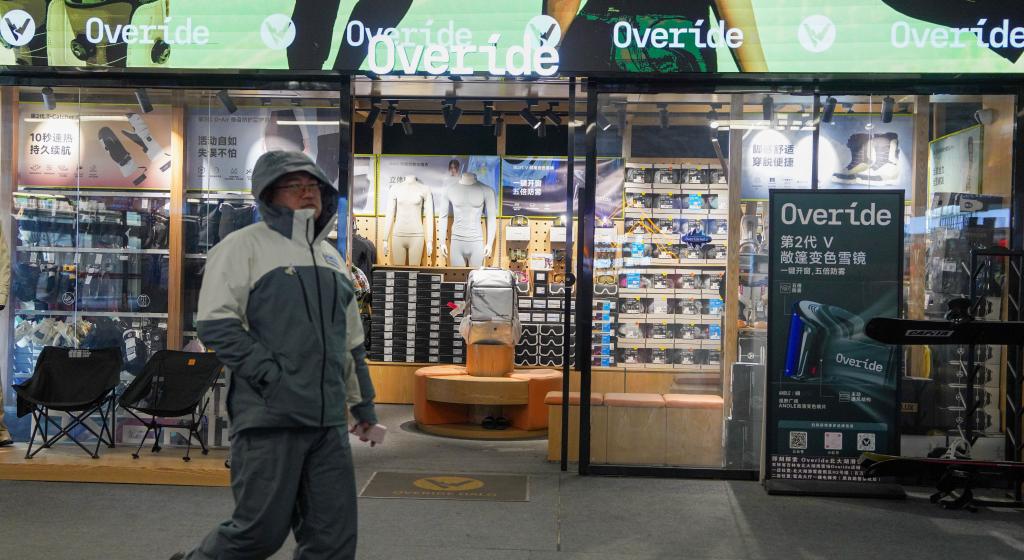 12 月 2 日,在吉林市北大湖滑雪度假区,游客经过一家国产品牌雪具店。(新华社记者 颜麟蕴 摄)