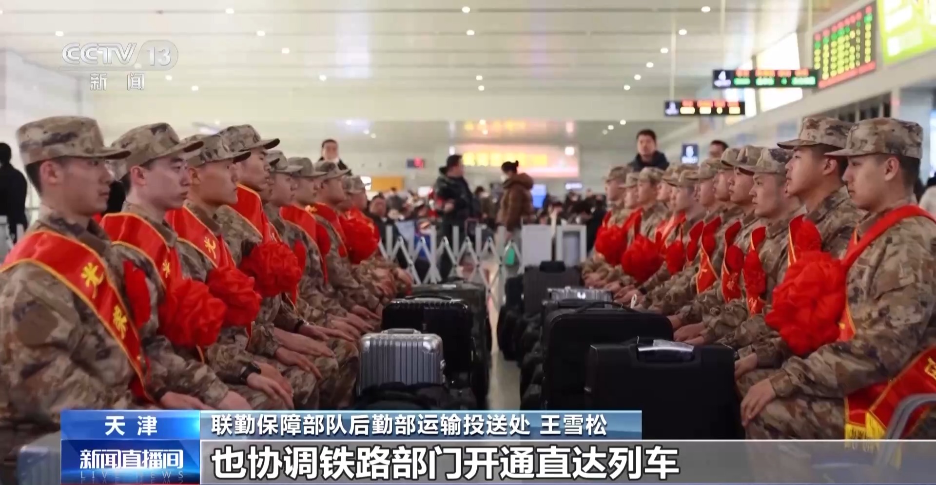 联勤保障部队后勤部运输投送处王雪松:针对新兵运输密集到发、批量大、时间紧、衔接紧凑的特点,我们协调铁路部门借助智能调度,动态监控、灾害预警监测等信息化手段,实时掌握运输动态,一旦出现晚点或异常情况,能够第一时间获取信息,迅速启动应急预案,避免滞留情况发生。