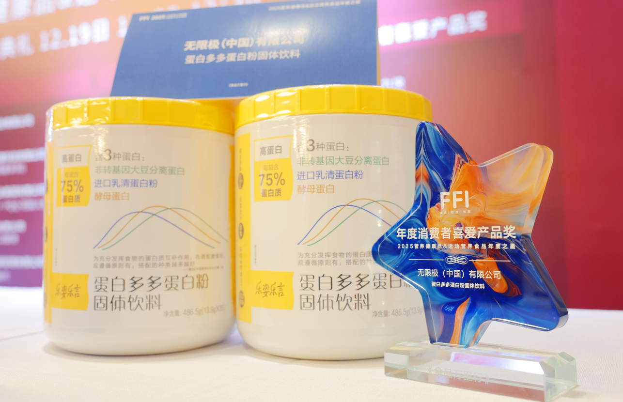同期举办的2025营养健康品&运动营养食品年度之星颁奖典礼上,无限极旗下“乐姿乐言”品牌的明星产品"蛋白多多蛋白粉固体饮料",斩获"年度消费者喜爱产品奖",充分印证了这款产品的硬核产品力与良好用户口碑。。