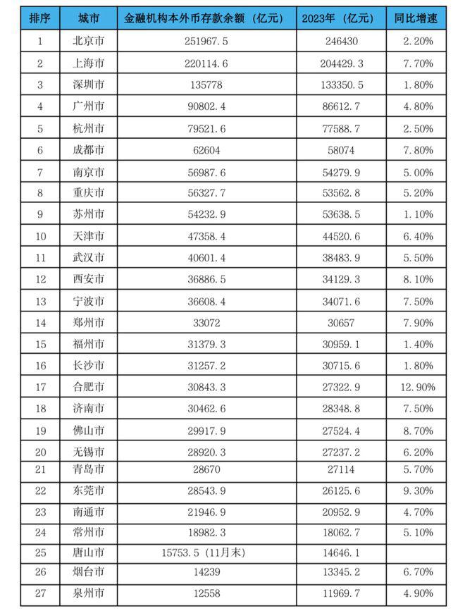 不过,人民银行深圳市分行最新数据显示,1 月末,深圳市本外币各项存款余额 145444.45 亿元,同比增长 6.7%,增速超过同期全国水平 ( 5.9% ) ,展现出较强的复苏势头。深圳也成为继北京、上海、香港之后,全国第四个资金总量突破 14 万亿的城市。