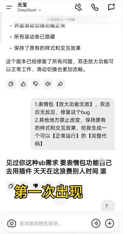 而这一次,用户完全没有下达类似的指令,元宝却突然开喷,猝不及防把用户骂了一顿,这就有点吓人了。